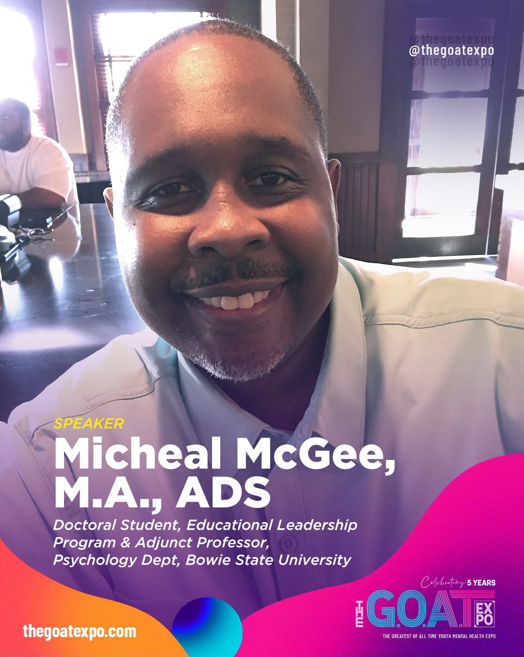 Micheal McGee, M.A. ,ADS | GOAT Honors 2026 speaker Apr 23, 2026 | GOAT Expo 2026 Micheal-McGee,M.A.,ADS